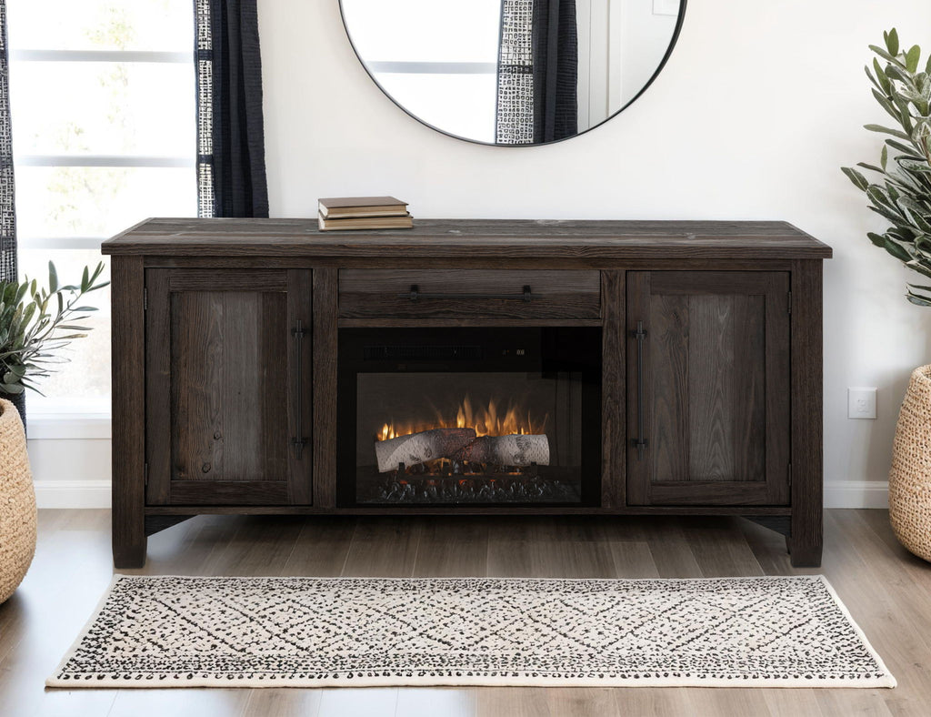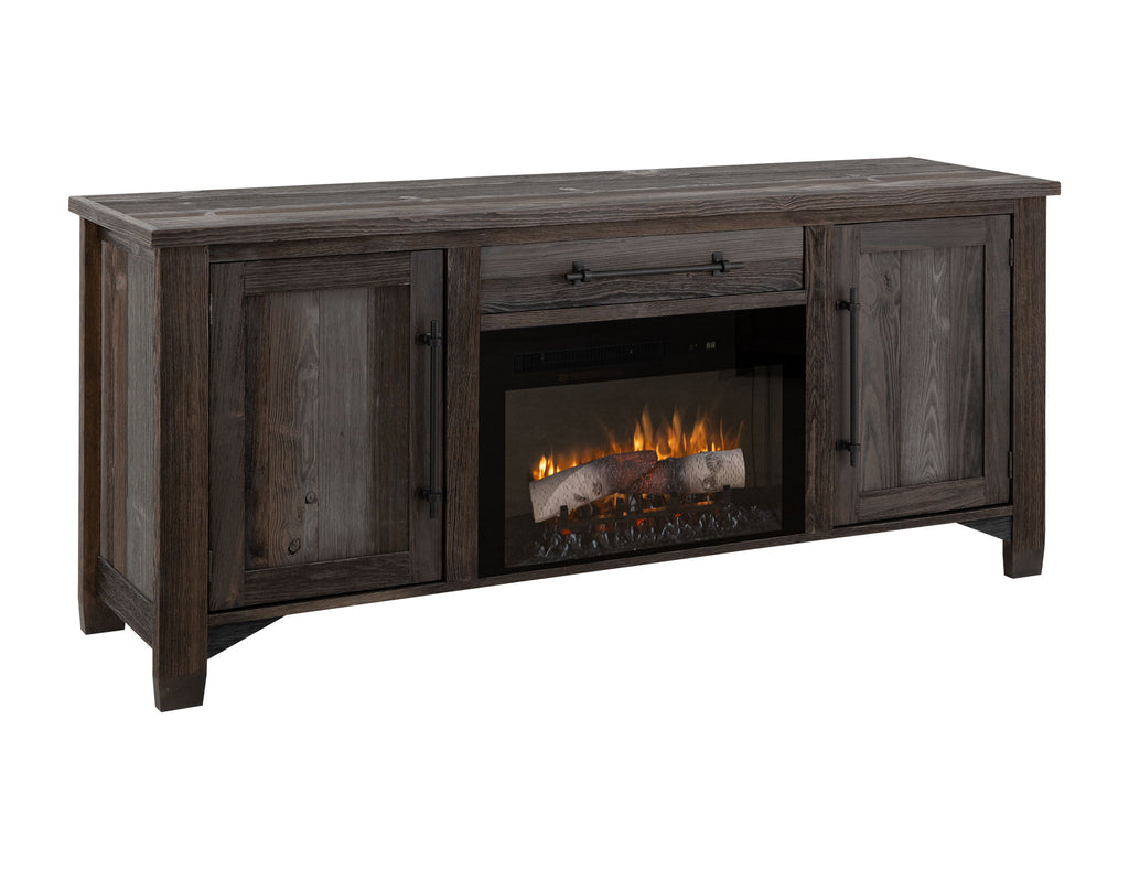 Town - Electric Fireplace - MulticolorProduct Features Crafted of pine wood. Multi-step lacquer in brown and gray highlights. Mortise and... Town - Electric Fireplace - MulticolorProduct Features Crafted of pine wood. Multi-step lacquer in brown and gray highlights. Mortise and tenon construction offers stability and durability. English dovetail on 100% solid wood drawer fronts. Hafele steel slides. Custom metal handles with non-chip finish. The electric fireplace device is sold separately. Electric fireplace device features: Infinity Flame Effect – Vivid bright life, like flame, for a beautiful fireplace experience. Infinity Log is molded to create a realistic log effect. Color Themes – Red, Blue, Embers /Log only Heating—The Unit has a forced fan heating system that can heat up to 1000 Sq ft. A remote control is included. View more