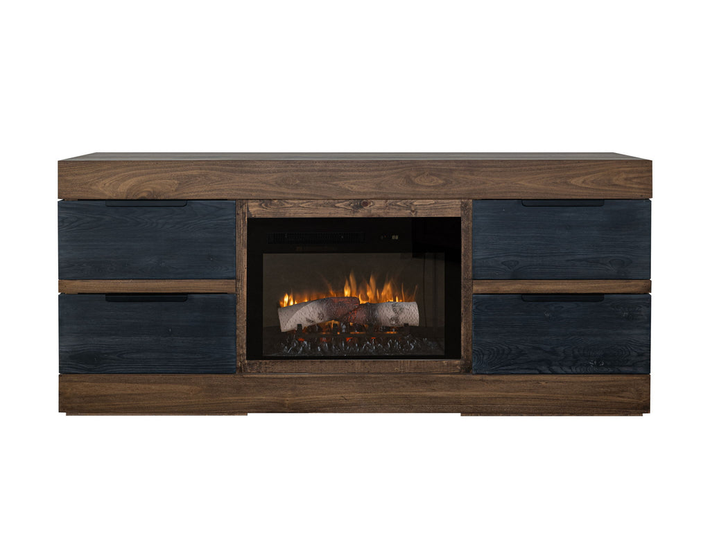 Tuxedo - 70" Fireplace - Dark BrownProduct Features Crafted of solid pine and poplar wood. Multi-step lacquer in a brown... Tuxedo - 70" Fireplace - Dark BrownProduct Features Crafted of solid pine and poplar wood. Multi-step lacquer in a brown and satin black finish. Mortise and tenon construction offers stability and durability. English dovetail on 100% solid wood drawer fronts. Hafele steel slides. Custom metal edge pulls with non-chip finish in black. The electric fireplace device is sold separately. Infinity Flame Effect – Vivid bright life, like flame, for a beautiful fireplace experience. Infinity Log is molded to create a realistic log effect. Color Themes – Red, Blue, Embers. Heating—The Unit has a forced fan heating system that can heat up to 1000 Sq ft. A remote control is included." View more