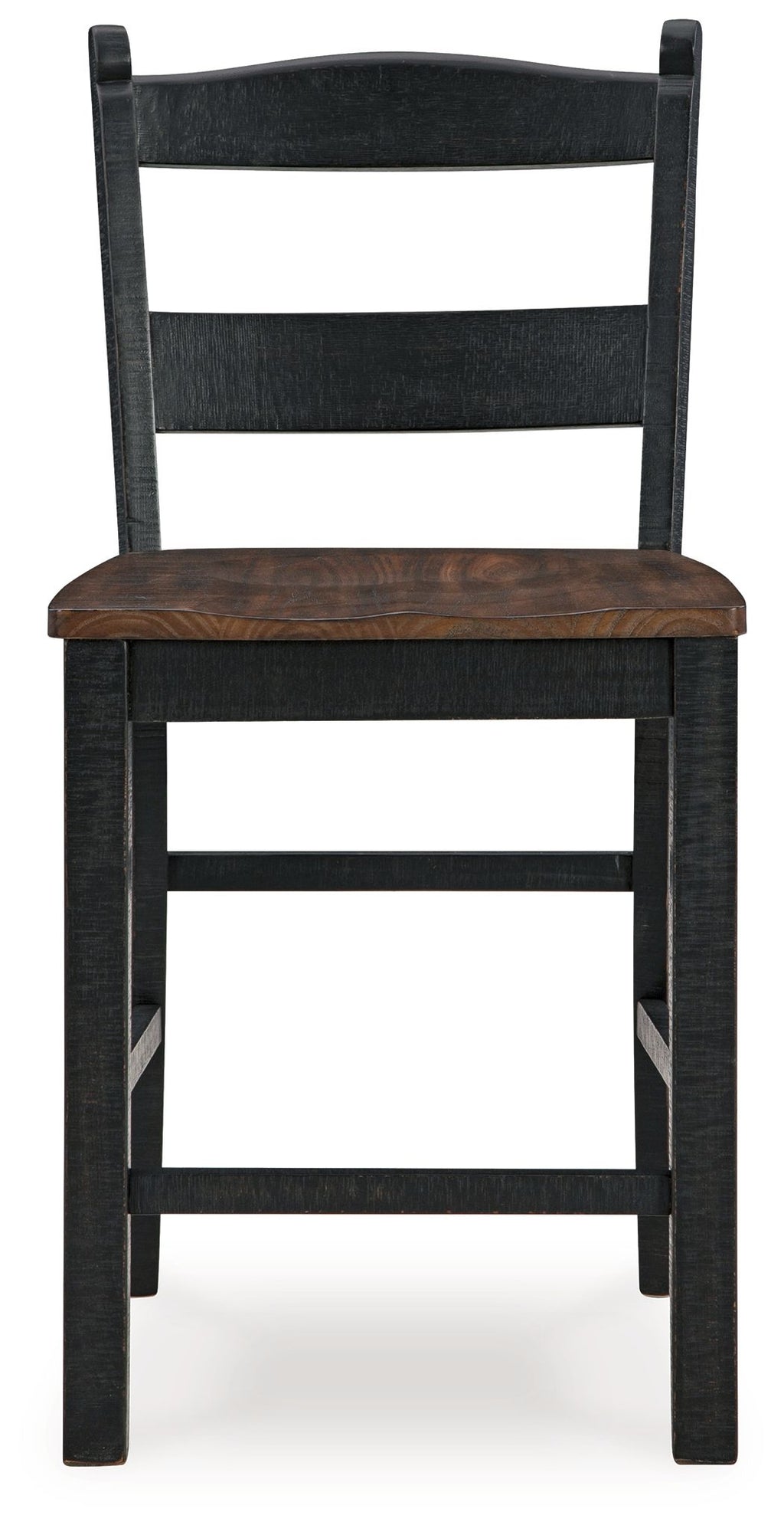 This counter height bar stool serves up the best in cottage styling. Its contoured seat keeps you comfortable while chatting... This counter height bar stool serves up the best in cottage styling. Its contoured seat keeps you comfortable while chatting over coffee and bantering over board games. The two-tone finish, versatile enough for many casual aesthetics, is a charming choice.Additional Dimensions Seat depth: 17.25" Seat width: 19.38" Seat height: 24" Footrest height: 8" Product Features Made with hardwood solids Distressed black frame Solid pine seat with rustic brown finish Contoured seat for comfort Front legs with adjustable levelers Assembly required Valebeck - Barstool (Set of 2) - Black / Brown19.38"W x 21.13"D x 39.13"H - 25.0 lb View more