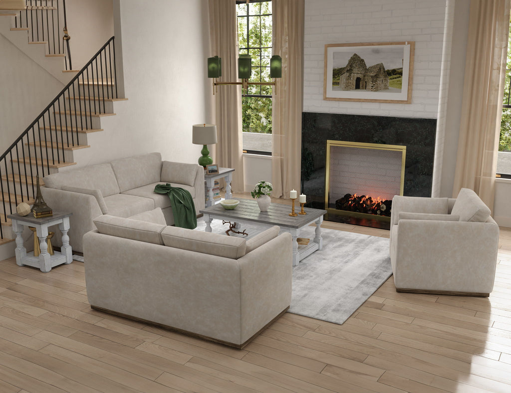 Wooden Frame & Base, Armchair. Bring comfort and style to your living room with the Vallarta armchair. Its elegant wooden... Wooden Frame & Base, Armchair. Bring comfort and style to your living room with the Vallarta armchair. Its elegant wooden frame not only provides structural stability but also adds a touch of rustic sophistication to your living space. With plush cushions and exquisite upholstery, it offers a comfortable and inviting seating experience.Product Features Upholstered in ivory faux leather. Constructed with plywood 15 mm thickness 5-layer ply, provides strength and durability to the frames. Featuring No-sag sinuous springs with tie wire for uniform seating. All sofas and love seats are double sprung on the edges. (No fall-off to the edges). Dual-density foam on seats. 1.8 Density core wrapped with resilient and 1.4 density foam for an ultimate Comfort Seat. Dacron wrapped Cushion cores Ultra-crowning on seats. Elastic webbing with loose pillow backs using siliconized virgin Dacron fiber utilizing sewn-in panels. (No migration). Fully padded with microfilaments foam for a better finish look. Exposed solid wood incorporating finishes to match case-good collections. Includes a decorative throw pillow. Vallarta - Armchair - Oyster43.0"W x 38.5"D x 36.5"H - 80.0 lb View more