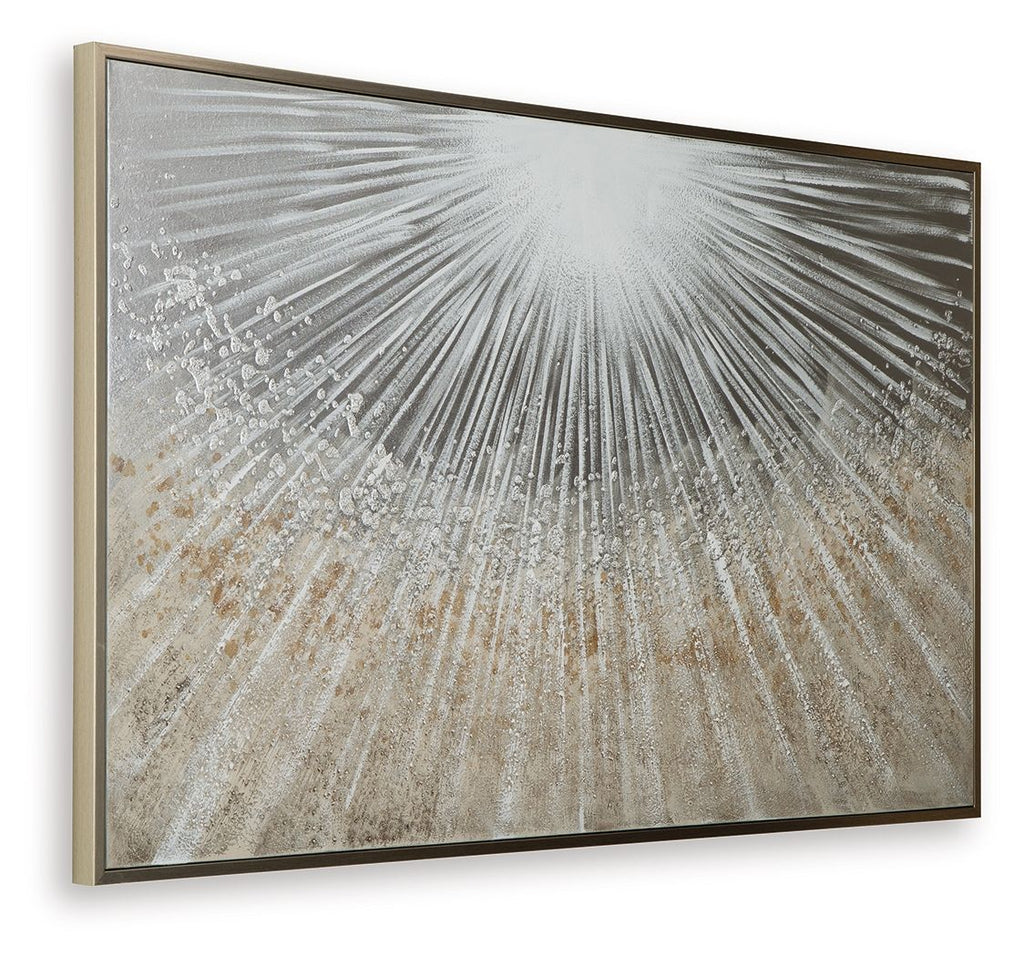 Brighten up your decor with this wall art. Its abstract design recalls the beauty of sunbeams peeking through the clouds,... Brighten up your decor with this wall art. Its abstract design recalls the beauty of sunbeams peeking through the clouds, with gleaming metallic foil embellishments for added flair. A coordinating champagne-colored frame beautifully completes the piece.Product Features Gallery wrapped canvas Champagne-colored frame Hand painted Champagne foil embellishments Sawtooth bracket for hanging Hangs four ways Due to the hand crafted nature of this product, some variations may occur Waldard - Wall Art - Gray / Taupe / White60.0"W x 1.57"D x 36.0"H - 15.29 lb View more