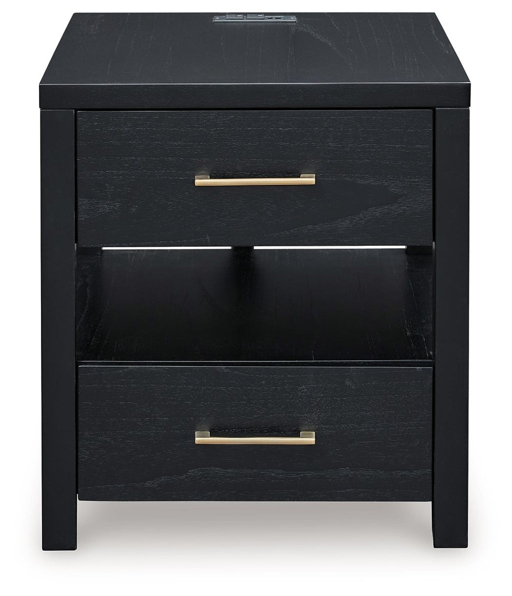 If you are a lover of simplicity, this end table is the perfect choice. Its black finish, casual contemporary design... If you are a lover of simplicity, this end table is the perfect choice. Its black finish, casual contemporary design and spacious storage capacity provide functional style wherever it’s displayed. And with conveniently located USB charging ports, this table keeps up with your high-tech lifestyle.Additional Dimensions Opening: 0" Cord length: 106" Drawer interior (2): 0" Product Features Made with hardwood solids, mindi veneer and MDF substrate Black finish with wood grain texture 2 smooth-gliding drawers Drawer pulls with goldtone finish Open cubby 110V power supply with USB-A and USB-C charging ports Power cord included; UL Listed Winbardi - Rectangular End Table - Black21.75"W x 24.0"D x 24.0"H - 69.0 lb View more
